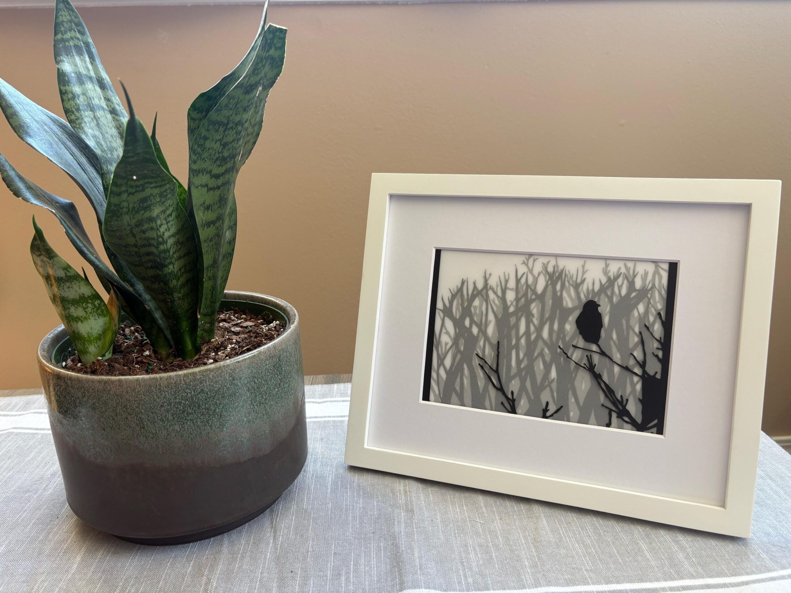 5×7 Handmade Crow Art – Matted Layered Papercraft – Shadowed