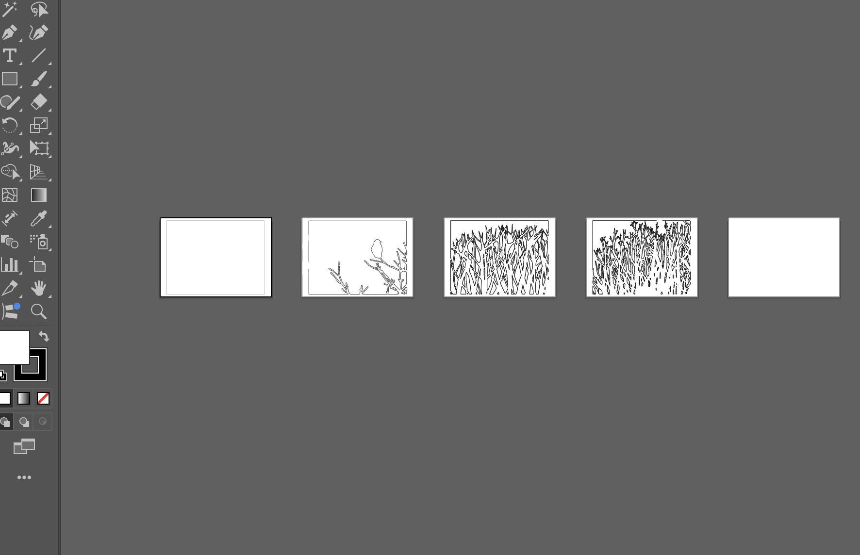 The piece captures a quiet moment of natural observation with sophisticated monochromatic tones and detailed organic patterns.